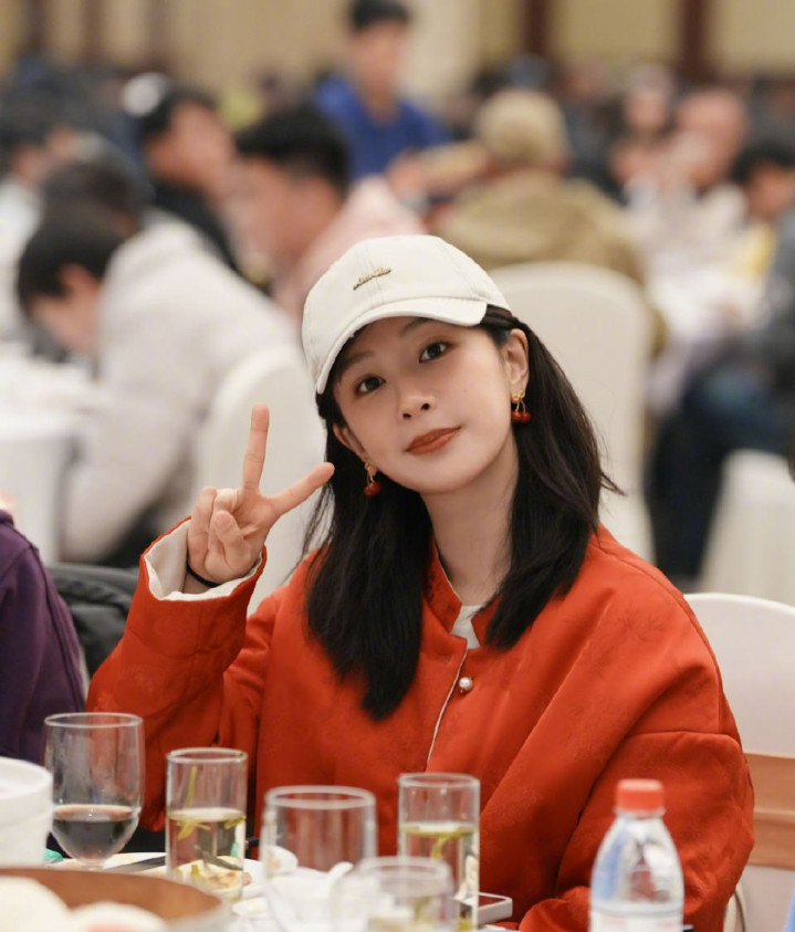 红色毛衣是她自己翻行李箱找的。樱桃耳环是粉丝送的生日礼,戴了快两年,耳针早磨出包浆。年夜饭桌上她夹了三筷子辣子鸡,被副导演拍照吐槽“比导演组还凶”,结果照片里她笑得露出右边小虎牙,旁边道具师正往她碗里堆饺子,皮儿上还沾着没抖干净的面粉。