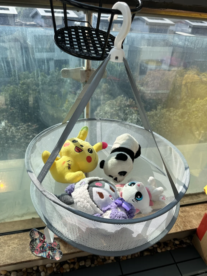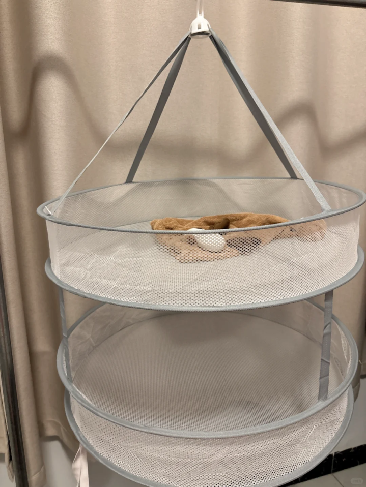 网眼细密均匀,晾晒衣服、乳贴等七零八碎的小东西,既不会露出来,又方便沥水,均匀的晒太阳。