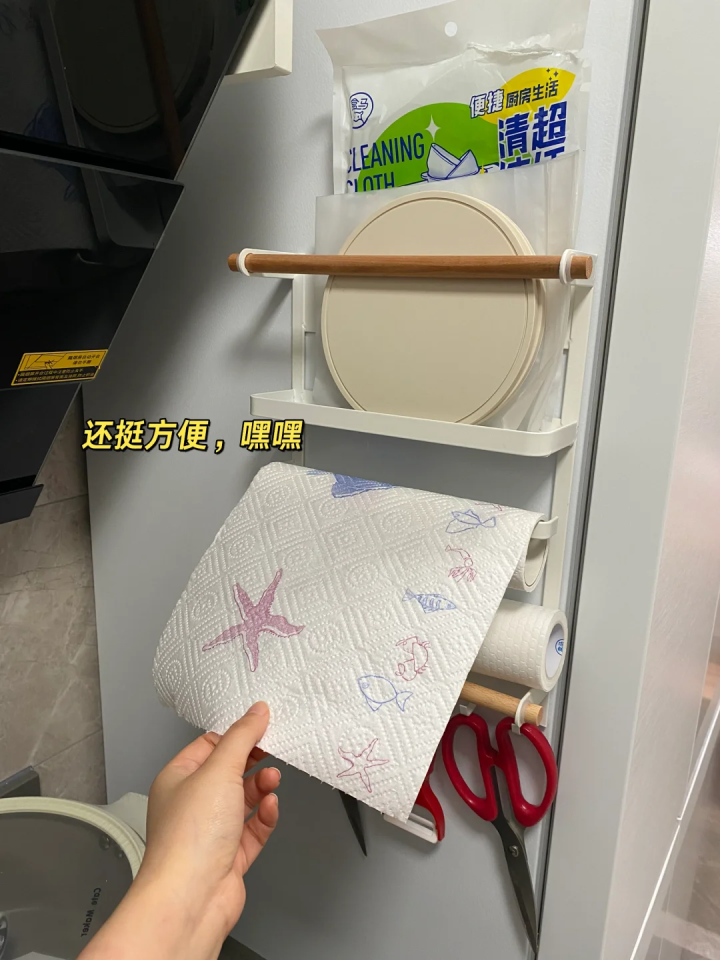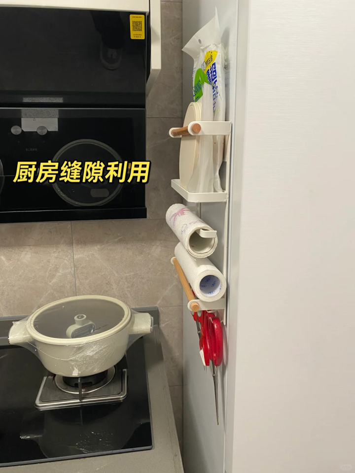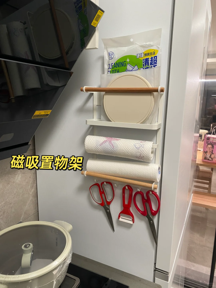 减轻小厨房收纳压力的同时也方便拿取东西,关键是不用的时候拆掉,一点痕迹都不会在冰箱上留下。