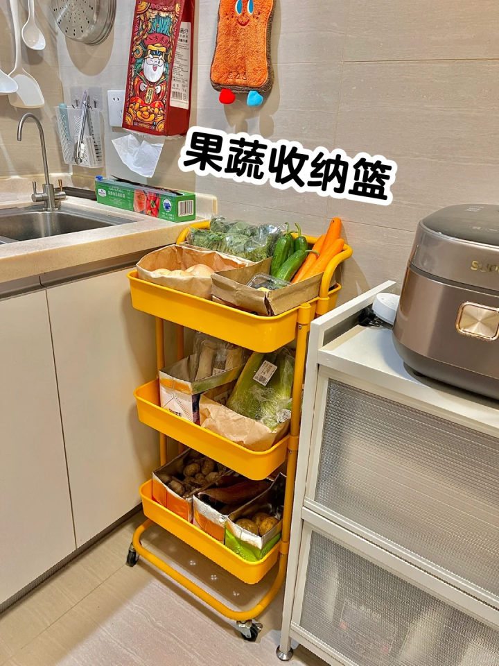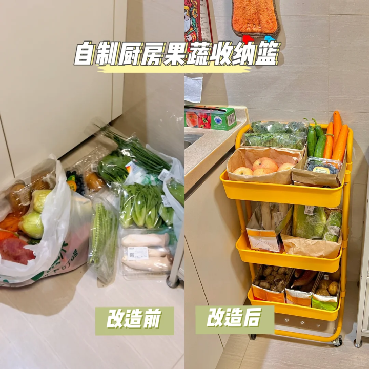 从前买回家的水果蔬菜都是胡乱地堆放在厨房的地面或台面上,看着乱不说,时间长了还可能因不够透气而导致食物提前变质,无法食用,白白的浪费钱。