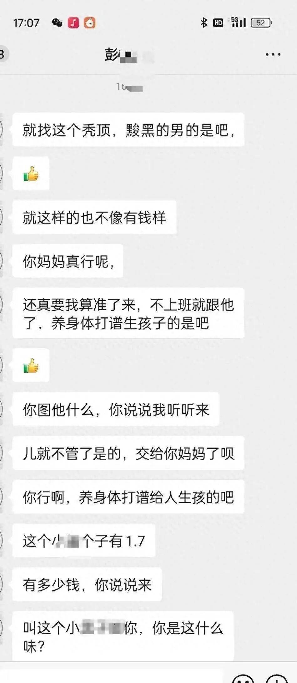 被告人得知被害人再婚后经常微信骚扰。图/受访者提供姐姐的死亡成了来先生一家走不出的阴影,即便生活还在按部就班地继续,每个人却都饱受折磨,“我们家属是完全接受不了的,这个家已经被祸害得支离破碎,现在我们也不需要什么赔偿了,唯一的诉求就是让彭某鑫得到重判。”孩子变成“杀人犯的儿子”,母亲精神恍惚摔断腿案发当天,李秋在意识到前夫找过来时,给母亲和弟弟拨打了电话,但均未接通。采访中谈及此处,来先生止不住地哭泣:“姐姐比我大8岁,从小就很谦让我,长大后也很疼我,但我这么多年都在外地,很少跟她见面,没给过她太多关心,甚至最后一通电话也没接到,我真的觉得很亏欠她。”姐姐的离世像一根刺,扎进来先生心里,也刺痛着这个家里的每个人。据来先生介绍,案发时,彭某鑫先是在客厅里捅刺姐姐数刀,而后又将其带入卧室,关上门继续作案。外甥就在客厅里,目睹父亲持刀刺向母亲,试图阻止,却被重重推开。卧室门关上后,他又站在门外听母亲嘶吼求救,11岁的孩子已经能感觉到母亲的生命在流逝,但他身上只有无法拨打电话的智能手表,无法阻止,也难以求救。来先生说,他的外甥在这件事后就像变了个人,曾经活泼开朗的孩子变得沉默寡言,经常把自己一个人关进屋子,时不时就会痛哭。“出事那天是孩子给彭某鑫开的门,对方说是想孩子才来的,小孩想不到自己的亲生父亲能做出这种事,就心软让他进来了,因此我外甥现在总是责怪自己,他觉得当时不应该开门,内心很受煎熬。”亲生父母之间被告人与被害人的身份对立,让孩子的处境变得艰难。“家里很多亲戚都不让我们养我外甥,他们觉得基因是会遗传的,杀人犯的儿子不能留,要么送到孤儿院,要么送到他爷爷奶奶那里,但我和我爸妈都想把孩子放在身边好好养育,毕竟孩子是无辜的,他又是我姐姐留下的唯一血脉。”来先生表示,由于自己身在外地,且有家庭,外甥现在是来先生的父亲在照顾,“我爸很辛苦,现在不但要照顾我残疾的奶奶和我外甥,还得照看我妈,因为我妈从我姐姐出事后就精神恍惚,两个月之前在外面失神,把腿给摔了,至今还不能下床,所以我爸就只能自己撑着,家务活、农活都一个人包揽了。”面对家中的情况,来先生想要回家帮忙,却终究有心无力,他有自己的妻儿要顾,养家糊口的责任让他无法辞掉现在的工作回临沂,姐姐的案子更是压得他难以喘息。“上万元的律师费一直是我在出,这对我来说不是小数目,如果后续审判结果不符预期,那我还要继续上诉,这势必是个持久战,我得在心理和经济上都做好准备。”