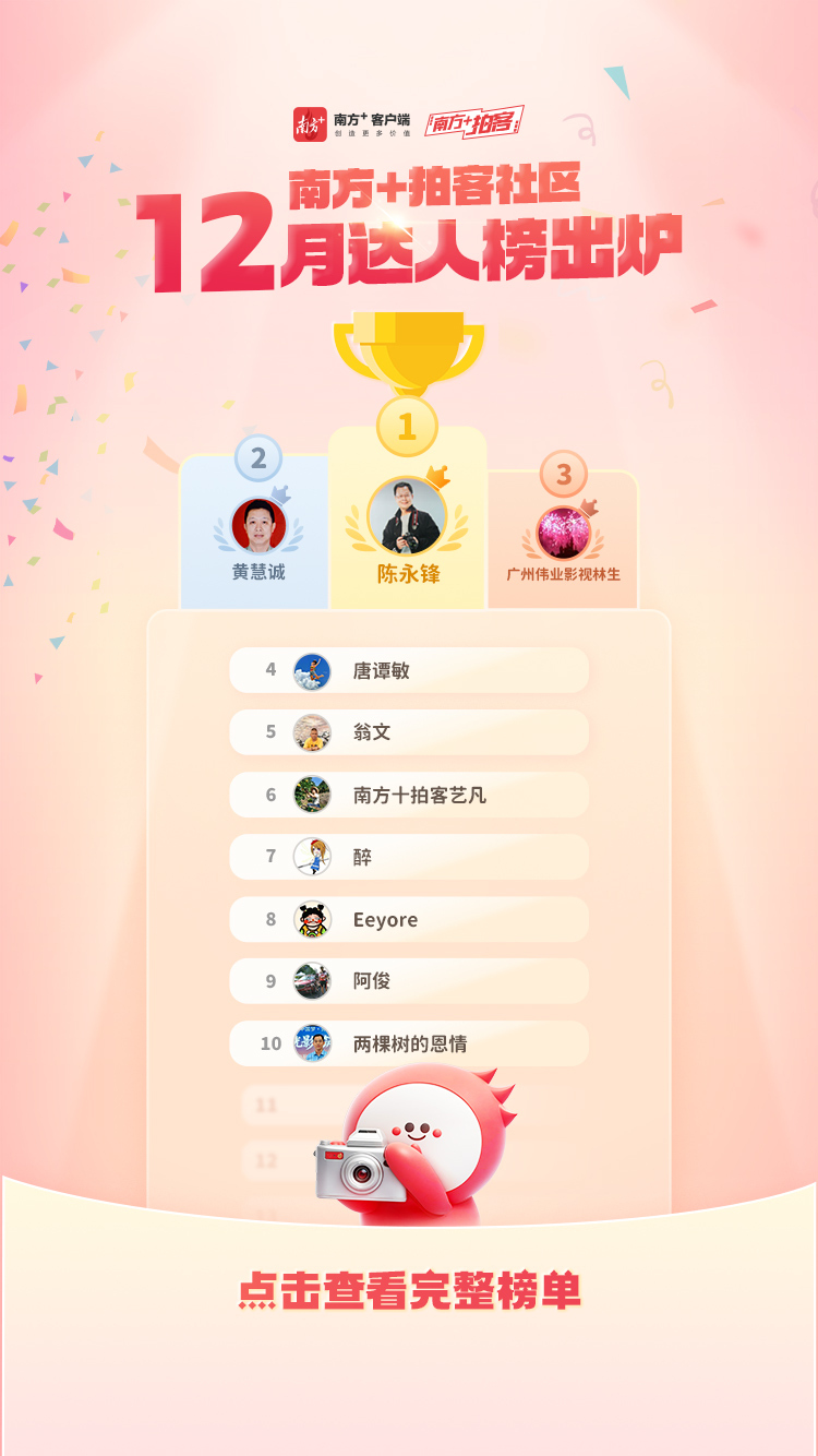 谁是本期流量之王?谁的镜头最能打动人心? 12月南方+拍客达人榜正式揭晓!